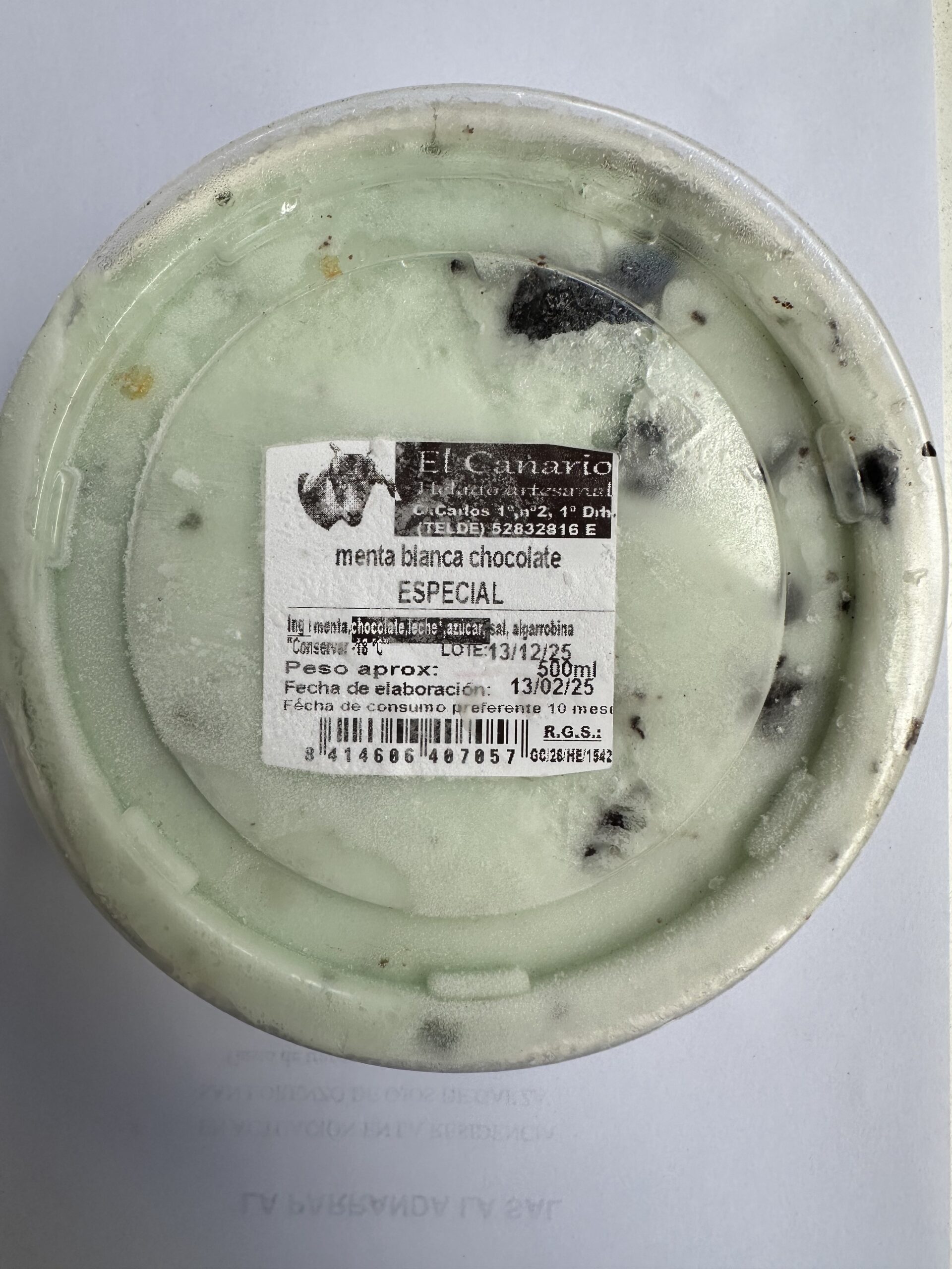 Helado «MENTA BLANCA CHOCOLATE ESPECIAL»